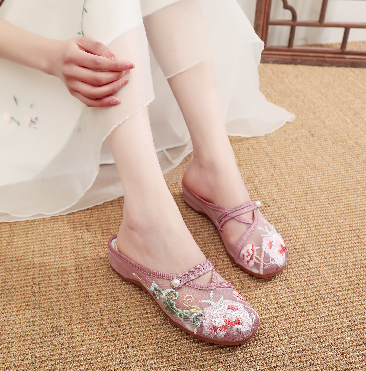လွန်ခဲ့သော ၂ မိနစ်ချယ်လှယ်ထားသော ဒေါက်နိမ့် လေ၀င်လေထွက်ကောင်းသော အမျိုးသမီး ဖိနပ်