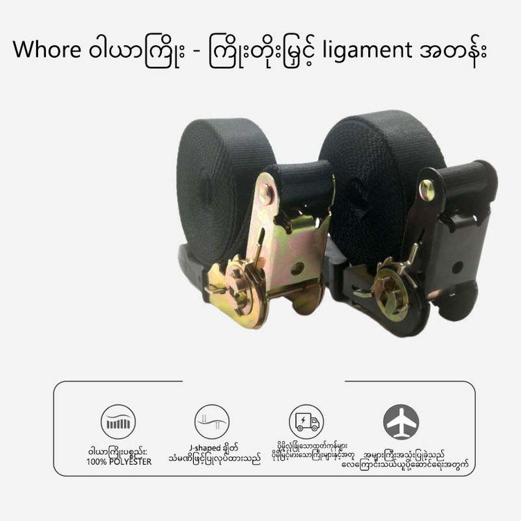 ကုန်တင်ကားများ၊ ကရိန်းများအတွက် မကြာခဏအသုံးပြုလေ့ရှိပြီး လေကြောင်းသယ်ယူပို့ဆောင်ရေးတွင် အသုံးပြုသည့် ... သယ်ယူပို့ဆောင်ရေးကာလအတွင်း ဘေးကင်းစေရန်အတွက် ကုန်ပစ္စည်းများကို ယာဉ်များနှင့် ချိတ်ရန် သို့မဟုတ် ချိတ်ရန်အသုံးပြုသည်။