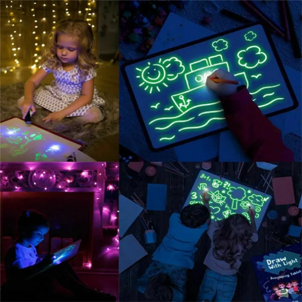 အမှောင်ထဲတွင် အကောင်းဆုံးအလင်းရောင်သက်ရောက်မှုကို ရရှိသည်။ ဘောပင်ထဲသို့ ဘက်ထရီများ (မပါဝင်) ကို ရိုးရိုးရှင်းရှင်း ထည့်ပြီး မှော်ဘုတ်ပေါ်တွင် စတင်ဆွဲပါ။