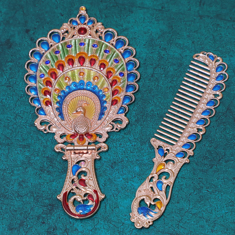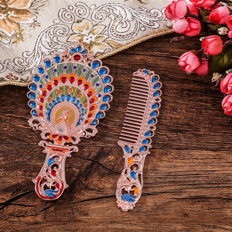 နာရီဝက်စောပြီးVintage Handle Makeup Mirror Comb Set