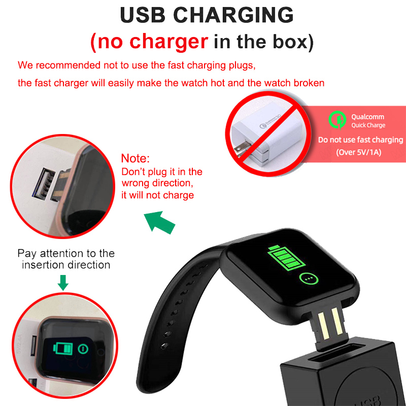 2. USB အားသွင်းပေါက်- ပုံမှန် 5V/1A အားသွင်းကိရိယာ သို့မဟုတ် ပါဝါဘဏ်အထွက်သည် သင့်လျော်သည်။ အားသွင်းမြန်သော အားသွင်းကိရိယာကို အသုံးမပြုပါနှင့်၊ ၎င်းသည် နာရီကို ပျက်စီးစေသည်။