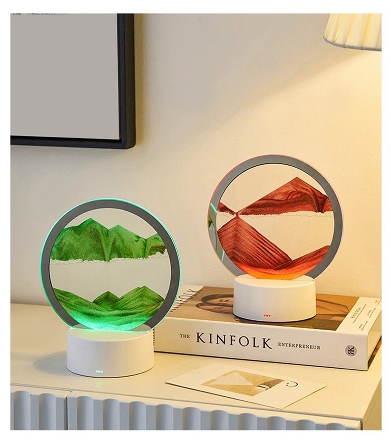 လွန်ခဲ့သော ၂ မိနစ်3D သုံးဖက်မြင် သဲနုန်းပန်းချီ စားပွဲတင်မီးအိမ်