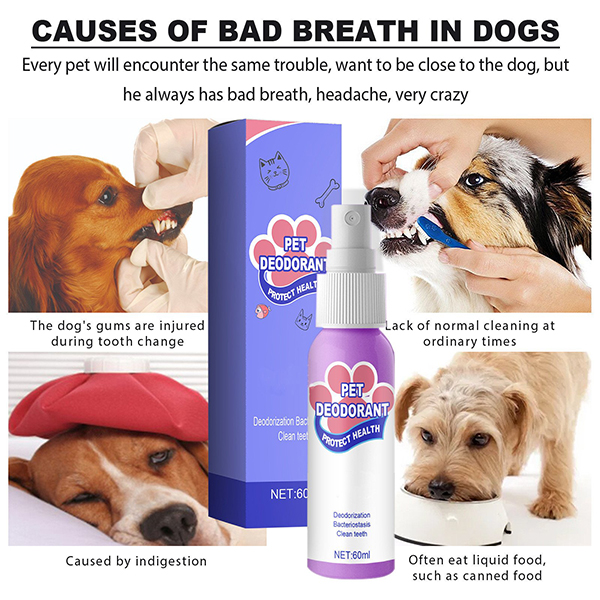 သွားသန့်ရှင်းရေးဖြန်းဆေးသည် သင့်အိမ်မွေးတိရစ္ဆာန်၏ အနံ့အသက်ဆိုးများကို ဖယ်ရှားပေးနိုင်ပြီး ဘက်တီးရီးယားများ၊ လျှာထွက်တံတွေး၊ သွားပိုးစားခြင်းစသည်တို့ကို