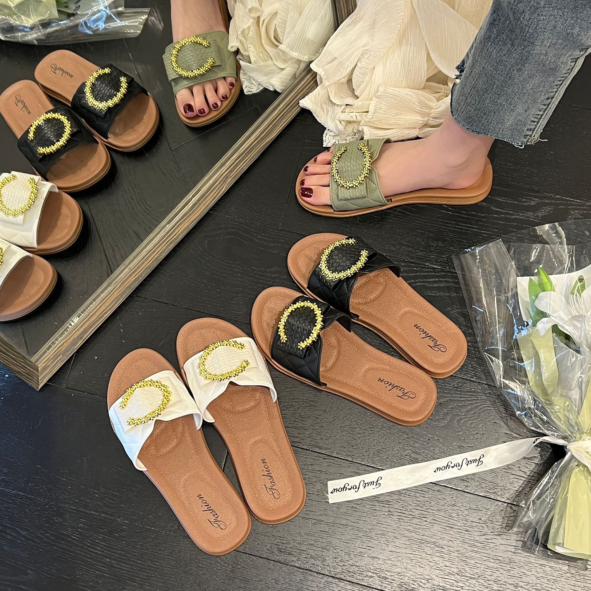 နာရီဝက်စောပြီးလေးထောင့်ပုံးဖိနပ်အသစ် အမျိုးသမီးဝတ် ဖက်ရှင်ပေါ့ပေါ့ပါးပါး အမျိုးသမီးခြေနင်းဖိနပ်