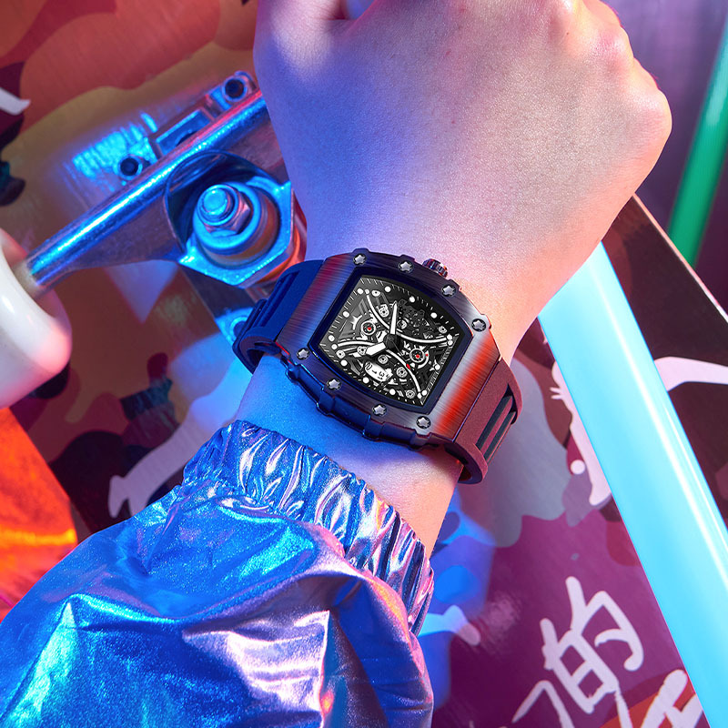 လွန်ခဲ့သော ၁ မိနစ်အမျိုးသားများ၏ ဆီလီကွန် Tonneau ပုံသဏ္ဍာန် တောက်ပသော ဖက်ရှင် အားကစား နာရီ