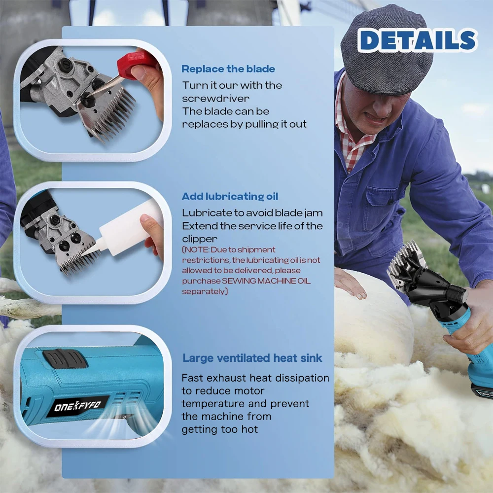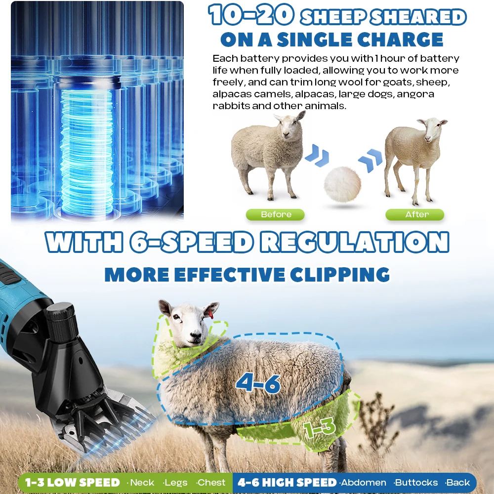 ဤ Premium Cordless 6-Speed 9-Teeth Electric Wool Shears Pet Machine သည် ဆိတ်များ၊