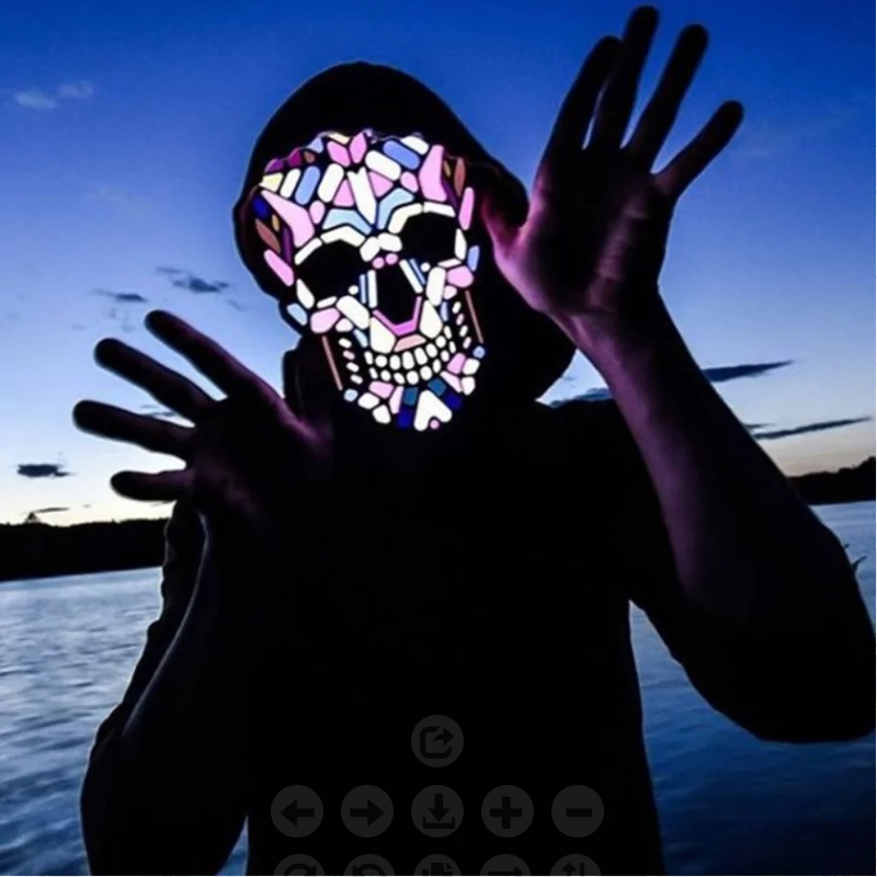 LED Mask သည် ဂီတသံစဉ်အထိ အလိုအလျောက် လင်းလာမည်ဖြစ်သည်။ Glitter Mask ၏ ရယ်မောခြင်းကို ခံစားလိုက်ပါ။