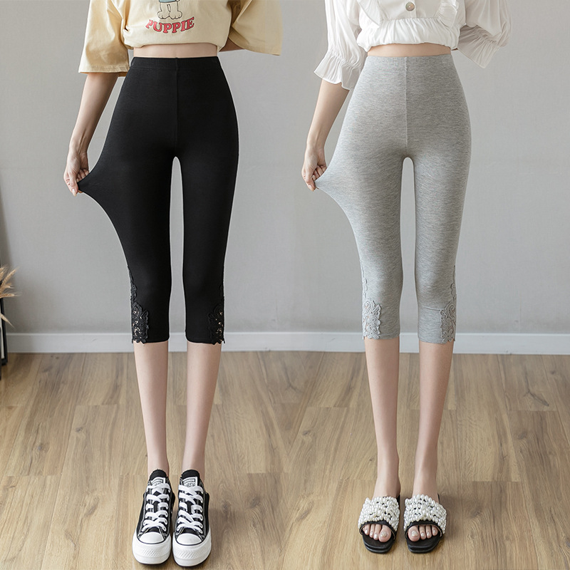 လွန်ခဲ့သော ၃ မိနစ် Lace Leggings အမျိုးသမီး ပါးပါး Elastic Slim Cropped Pants