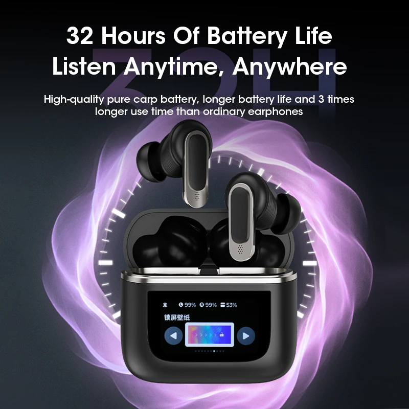 လွန်ခဲ့သော ၃ မိနစ်Smart Touch Screen Noise Canceling Waterproof နှင့် Sweatproof Bluetooth နားကြပ်များ