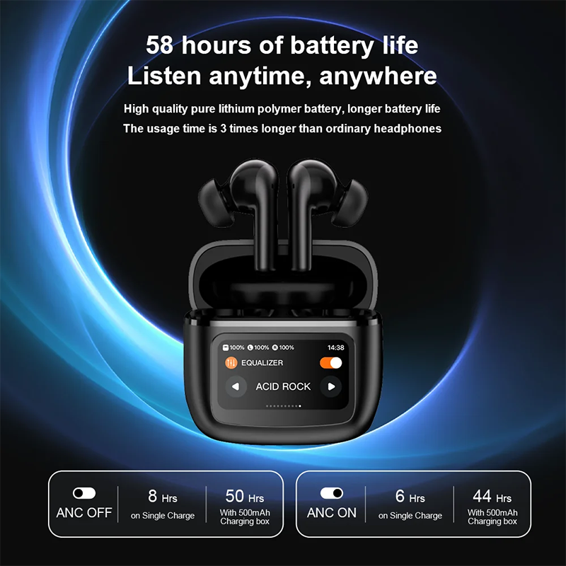နာရီဝက်စောပြီးSmart Touch Screen Noise Canceling Waterproof နှင့် Sweatproof Bluetooth နားကြပ်များ